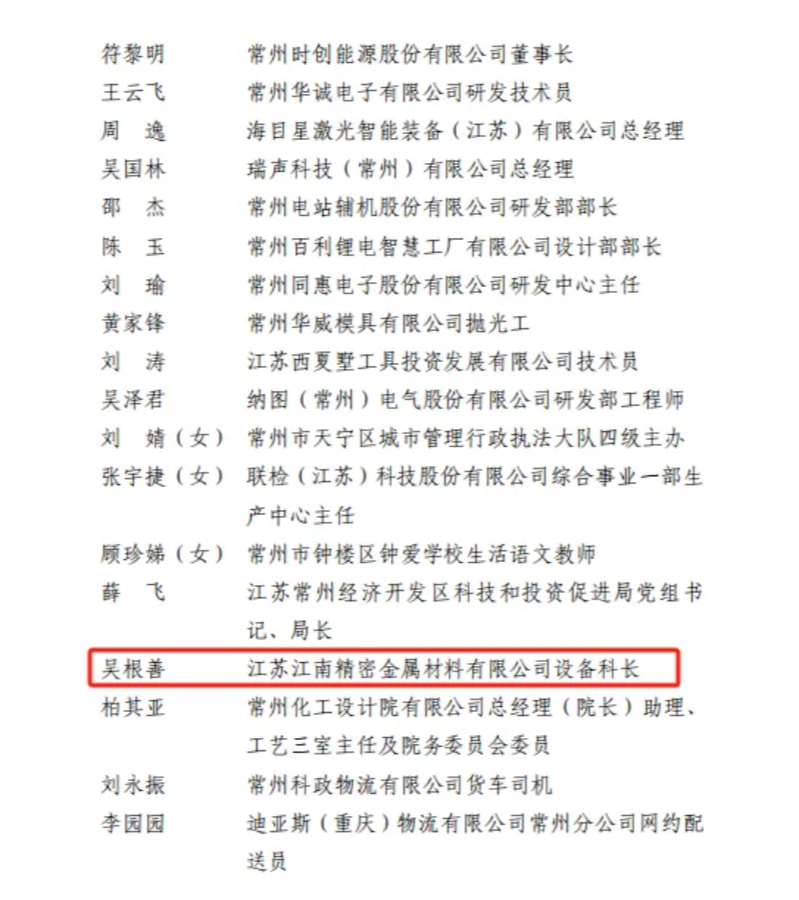 为表彰先进、树立榜样,在全社会弘扬劳模精神、劳动精神、工匠精神,江苏省总工会、省人力资源和社会保障厅发布了《关于表彰 2025年江苏省五一劳动奖、江苏省工人先锋号和江苏省五一巾帼标兵的决定》,其中集团员工吴根善被授予江苏省五一劳动奖章。
