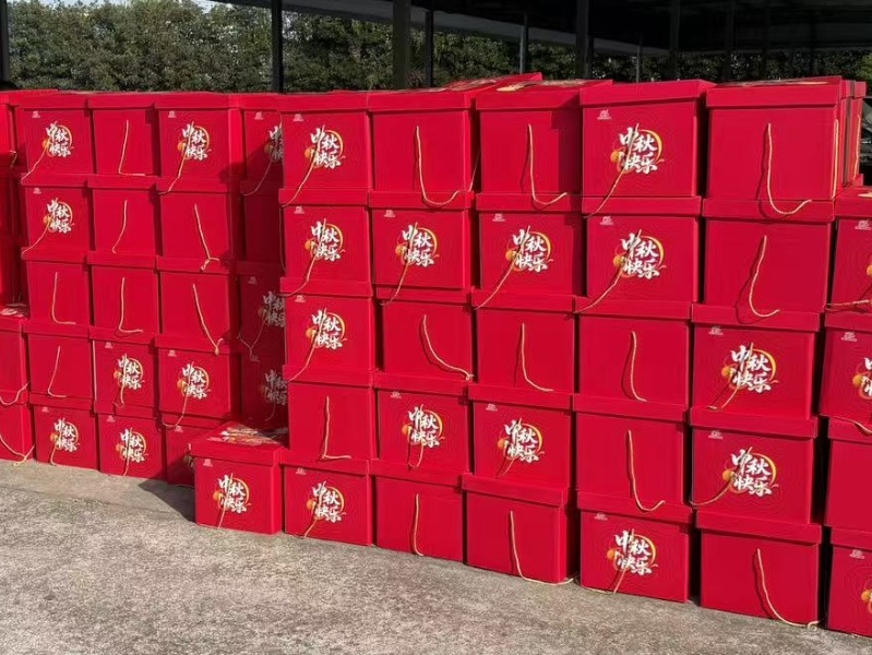 福利发放现场,温馨与喜悦交织,员工们手提沉甸甸的精美礼盒,脸上笑容洋溢,心理倍感温暖。每一个中秋礼盒都是公司实实在在的心意,承载着对全体同事们和家属们的真切关怀和祝福。大家共享传统佳节的喜悦,感受着来自集团的殷切关怀。